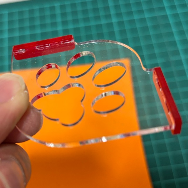 角R定規の利便性を向上させるツールです。 猫の手も借りたいときにお使いください。 小さいものを製作する際は、ミニスコヤのほうが便利です。 *角R定規は付属していません。 ミニスコヤ(ミニ角R定規付)、ミニ角R定規+ をお買い求めください。 *ぷっくりメーカーとしてはお使いいただけません。 猫の手(赤)のほかに、犬の手バージョン(青)もあります。