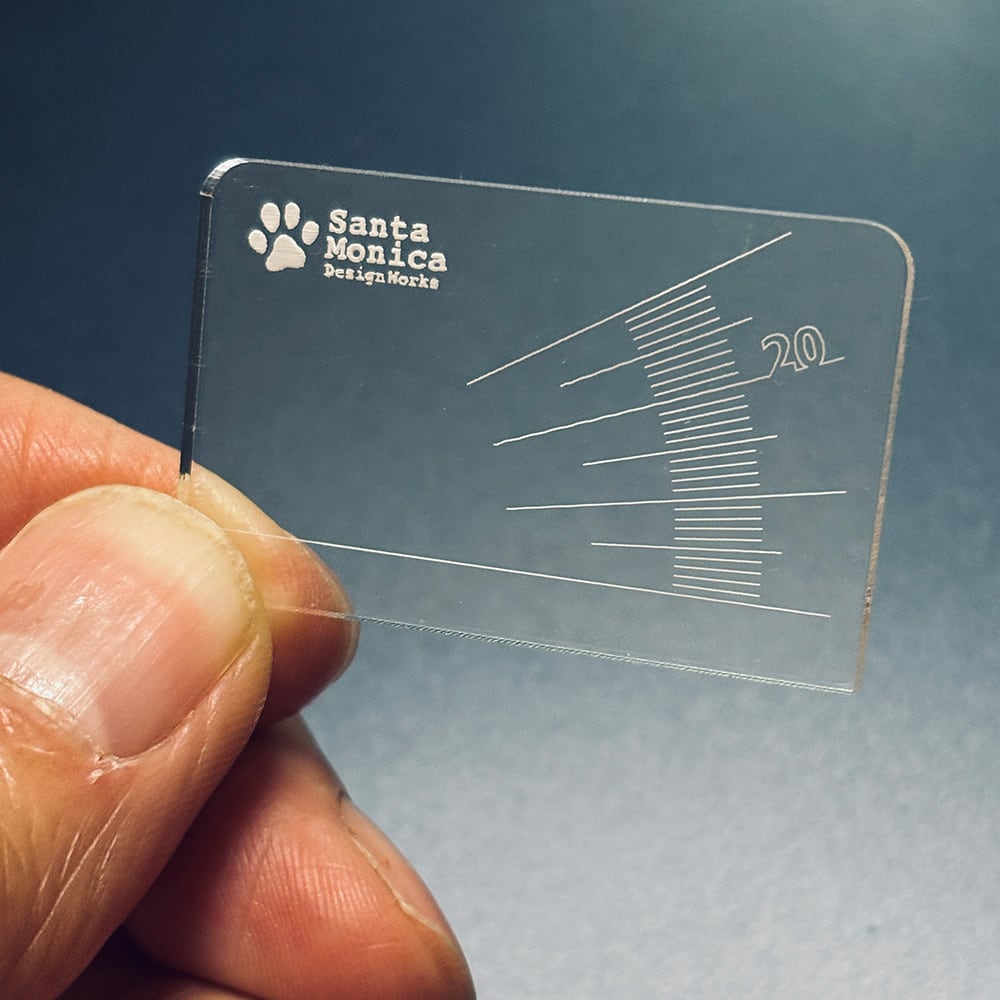 特殊な角度線の引き方をしているので、漉き隙チェッカーの平行チェッカー以外のツールでは正確に測ることができません。同様に、このツールを分度器として他の目的(角度計測)にはお使いいただけません。