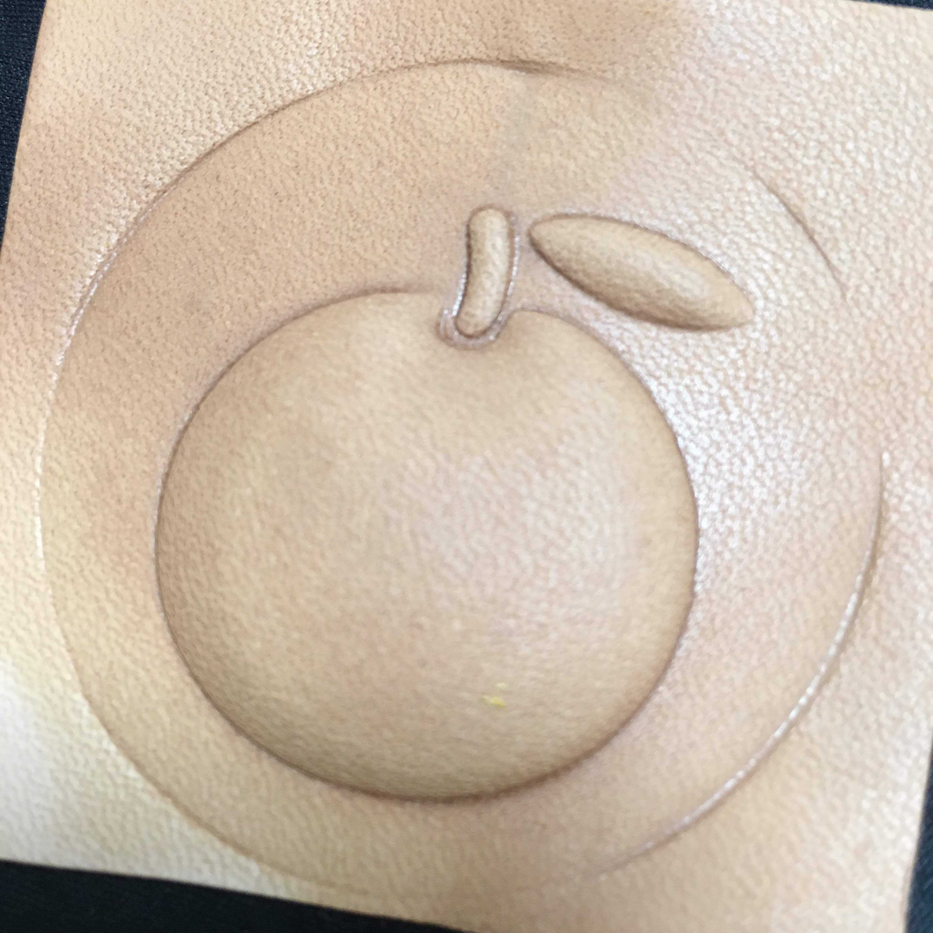 1.5mm前後のタンニンなめし革に均一に水分を含ませ、ぷっくりメーカーの上に置いて指の腹や先の丸い棒などを使って押して整形します。