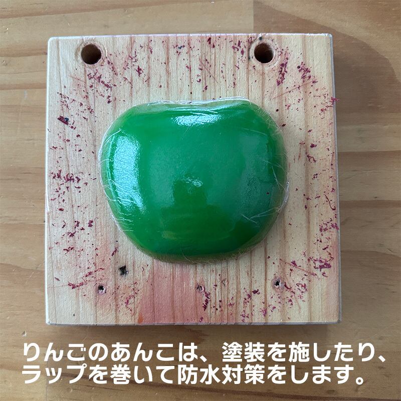 りんごのあんこはペンキを塗る、ラップを巻く、などで防水対策をしてください。